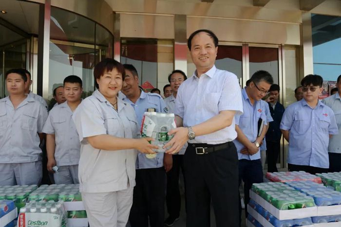 炎炎夏日、“清涼”入心。近日,隨著氣溫的不斷飆升,受北京市總工會(huì)委托,集團(tuán)黨委書(shū)記、董事長(zhǎng)王國(guó)華,集團(tuán)黨委副書(shū)記、總經(jīng)理陳宇分別帶隊(duì)來(lái)到大興化工園區(qū)、華騰橡塑、職防院,化研院、華騰新材料、華騰拓展親切慰問(wèn)奮戰(zhàn)在生產(chǎn)經(jīng)營(yíng)一線的干部職工。