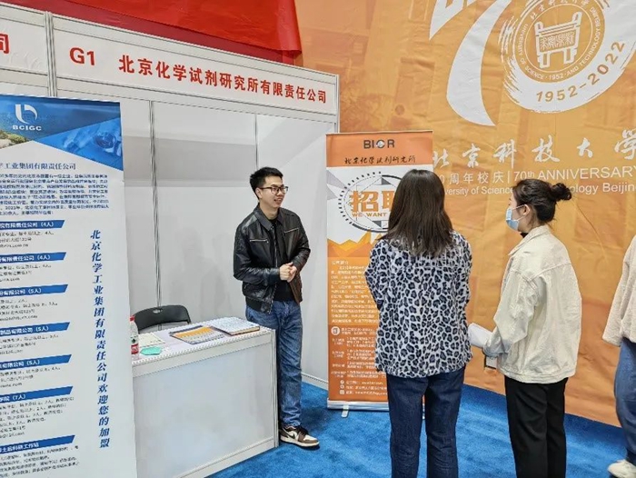 為落實北京化工集團“十四五”人才發(fā)展規(guī)劃,加強青年人才隊伍建設(shè),集團人力資源部積極組織所屬企業(yè)參加春招。試劑所、華騰新材、華騰檢測先后參加了2月24日北京科技大學(xué)、2月27日北京理工大學(xué)2023屆畢業(yè)生春招首場大型綜合雙選會。招聘會上,各企業(yè)通過宣傳片、PPT、宣傳冊、面對面交流等方式向畢業(yè)生介紹公司業(yè)務(wù)發(fā)展、崗位需求、員工職業(yè)發(fā)展等情況,讓他們更加系統(tǒng)全面了解化工集團,加入化工集團。