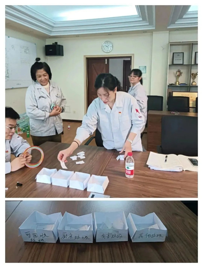 第二黨支部組織開展了“垃圾分類我能行,桶前值守我先行”主題黨日活動,10余名黨員積極參加看桶、守桶、護桶工作,向職工宣傳垃圾分類知識,引導(dǎo)職工正確分類投放,在踐行垃圾分類工作中敢于叫響“我先來,看我的!”,切實發(fā)揮了黨員先鋒模范作用。