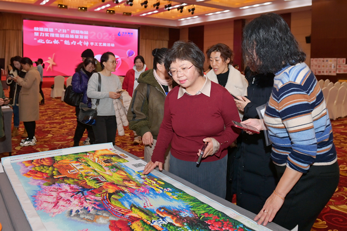 《人間煙火》舞蹈徐徐拉開活動序幕。來自集團各單位的女職工們親手制作的手工藝作品,讓大家眼前一亮,精美的剪紙和手工藝編織、精湛的書法、奪目的繪畫、華麗的十字繡等185件手工藝作品,色彩艷麗、栩栩如生。