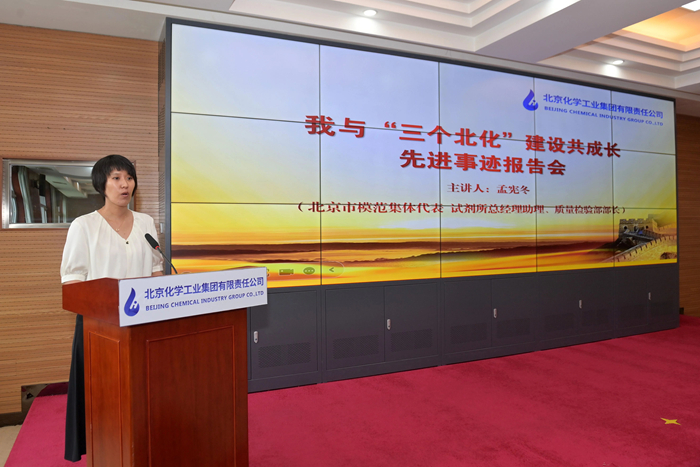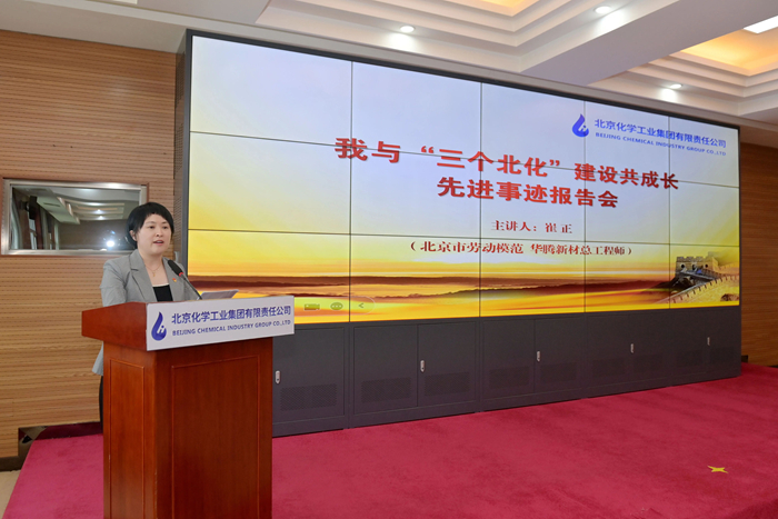 在先進(jìn)事跡報(bào)告環(huán)節(jié),市勞動(dòng)模范,華騰新材總工程師崔正攜《以使命為船,以熱愛為帆,在時(shí)代洪流中奮勇爭先》;市模范集體代表,試劑所總經(jīng)理助理、質(zhì)量檢驗(yàn)部部長孟憲冬以《傳承工匠精神,助力“三個(gè)北化”,試劑所質(zhì)量檢驗(yàn)部的奮進(jìn)之路》為題,圍繞個(gè)人成長、科研開發(fā)、團(tuán)隊(duì)建設(shè),自信講述與北京化工共同成長的點(diǎn)點(diǎn)滴滴。