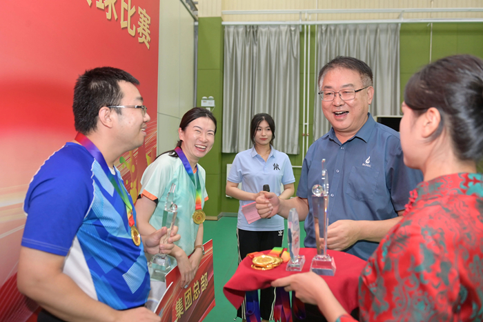 7月25日下午,在年中工作會(huì)剛剛閉幕之時(shí),“我與‘三個(gè)北化’建設(shè)共成長”職工宣講比賽決賽暨先進(jìn)事跡報(bào)告會(huì),第五屆“北化杯”乒乓球比賽決賽在技師學(xué)院接力舉辦。北京化工集團(tuán)黨委書記、董事長陳宇,黨委副書記吳瑞峰現(xiàn)場聆聽宣講和報(bào)告,觀看乒乓球比賽,為選手們加油鼓勁。
