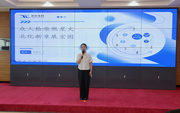 在首先舉行的“職工宣講比賽決賽暨先進(jìn)事跡報(bào)告會(huì)”上,從預(yù)賽29名參賽者中脫穎而出的選手們,依次走上講臺(tái),深情宣講扎根“三個(gè)北化”建設(shè)一線的鮮活故事。來自北化生科、華騰檢測、化研院、北搪公司的4名宣講員進(jìn)行了精彩的宣講展示,他們生動(dòng)講述了北化人面向生物醫(yī)藥新“藍(lán)海”的無畏拓進(jìn),在市場營銷、科研開發(fā)、信訪維穩(wěn)等重點(diǎn)工作中攻堅(jiān)克難的感人故事。來自技師學(xué)院、北普公司、北化房地產(chǎn)公司的3名宣講員進(jìn)入決賽,他們或講述職業(yè)教育的酸甜苦辣、或反映現(xiàn)代產(chǎn)線的紛繁復(fù)雜、或展示酒店行業(yè)的微笑服務(wù),娓娓道來的深情告白,無不體現(xiàn)出北化人心系首都發(fā)展安全、情系百姓健康幸福的錚錚誓言。