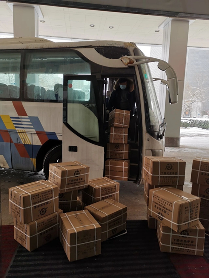 突如其來的疫情讓白云杉立即取消出京返鄉計劃,從大年初一起就一直奮戰在銷售一線,組織全體銷售人員,全力保障手套的銷售配送。