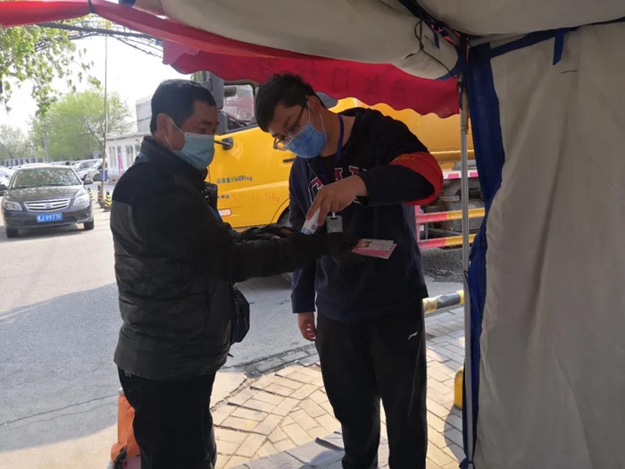 還有一件事我很驕傲。在工作中,我發現工作人員檢查證件時全都集中在卡口前,再加上村口人員嘈雜,使檢查工作既降低了效率,又容易造成人員聚集,于是我提議,檢查證件和測量體溫這兩項工作分別由兩位同事進行,在卡口處檢查證件,進入帳篷后由另一位同事對村民們進行體溫測量,這樣做提高了人員通過效率,也避免了村口人員聚集。