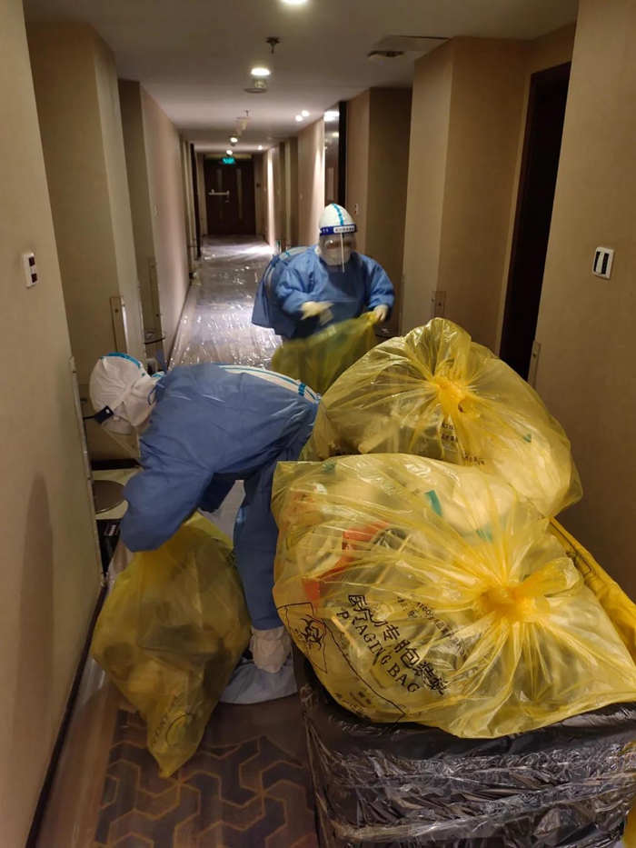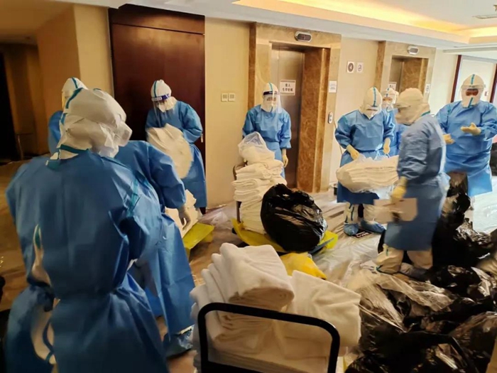 困難和挑戰(zhàn)首先體現(xiàn)在前臺(tái)入住、離店手續(xù)、客房清潔的工作流程的較大變化上。前臺(tái)每次接到指揮部通知即將有新隔離人員入住或隔離人員解除隔離時(shí),他們都需要全副武裝穿上防護(hù)服在前臺(tái)等候。每天都有隔離人員解除隔離,離開(kāi)酒店后,消殺組會(huì)對(duì)客房、公共區(qū)域進(jìn)行全面消毒。客房服務(wù)組在隔離人員退房后,對(duì)所有隔離人員使用的物品嚴(yán)格按照感染性廢物進(jìn)行處理,處理完畢后重新打掃恢復(fù)房間使用,這對(duì)于從未從事過(guò)醫(yī)療行業(yè)的員工來(lái)講,是一種全新挑戰(zhàn),在接受了醫(yī)護(hù)人員的緊急培訓(xùn)后,他們嚴(yán)格履行操作流程,對(duì)100多個(gè)房間進(jìn)行了打掃翻房處理,保證了后續(xù)隔離觀察人員的順利入住。