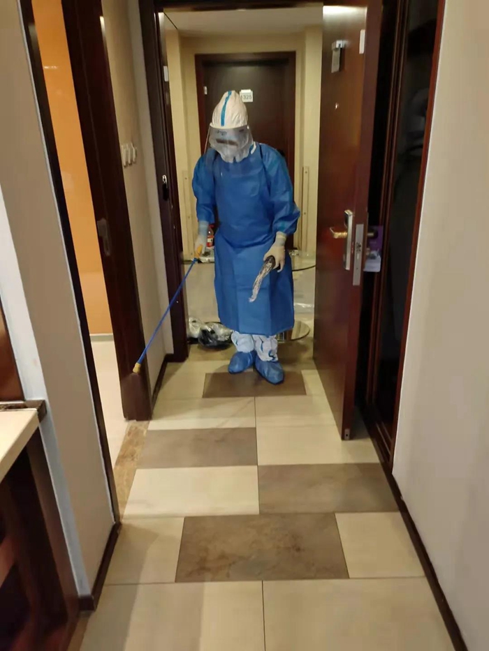 酒店負(fù)責(zé)人白江自隔離觀察人員入住酒店那一刻開(kāi)始,便堅(jiān)守在崗位上,吃住在酒店,24小時(shí)在崗,直至最后一位集中隔離觀察人員離開(kāi),酒店完成消殺后,他才拖著疲憊的身軀回到家中。現(xiàn)場(chǎng)工作人員安全平安、零感染,此次隔離觀察任務(wù)圓滿完成。