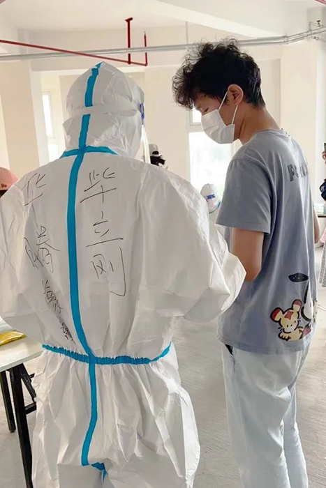 最讓我難以忘記的是穿大白的經(jīng)歷。因這一穿就是三個(gè)多小時(shí),以前都是看別人穿防護(hù)服,現(xiàn)在輪到我了。防護(hù)服密不透風(fēng),穿著三個(gè)多小時(shí)后脫下來(lái)時(shí),全身都已經(jīng)濕透了,這時(shí)深刻體會(huì)到了醫(yī)護(hù)人員和志愿者的辛苦和不易。
