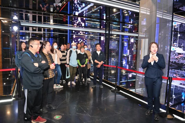 在講解員的引導下,參觀的同志們認真聆聽、親身感受森林書苑、元宇宙體驗館、古典文獻館、藝術(shù)文獻館等區(qū)域的設(shè)計理念,全視角觀摩智能化立體書庫為讀者提供的便捷、高效的服務(wù),沉浸式體驗“數(shù)智賦能”“AI+圖書館”的跨界融合新模式。