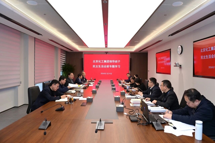 1月14日,北京化工集團黨委以理論學習中心組學習方式,組織領導班子專題學習2025年度民主生活會確定的學習內容,黨委書記、董事長陳宇主持學習并帶頭領學、帶頭交流發言。