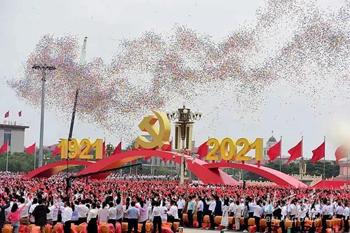 7月1日,慶祝中國(guó)共產(chǎn)黨成立100周年大會(huì)在北京天安門(mén)廣場(chǎng)隆重舉行。當(dāng)人們?nèi)孕某迸炫取o(wú)比激動(dòng)地沉浸在總書(shū)記重要講話中時(shí),伴隨著天安門(mén)廣場(chǎng)7萬(wàn)多人的歌聲、歡呼聲,10萬(wàn)只氣球騰空而起,天安門(mén)廣場(chǎng)上空剎那間彩球飛舞、彩練當(dāng)空,瞬間將慶祝中國(guó)共產(chǎn)黨成立100周年大會(huì)推向又一個(gè)高潮。