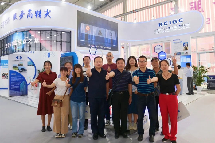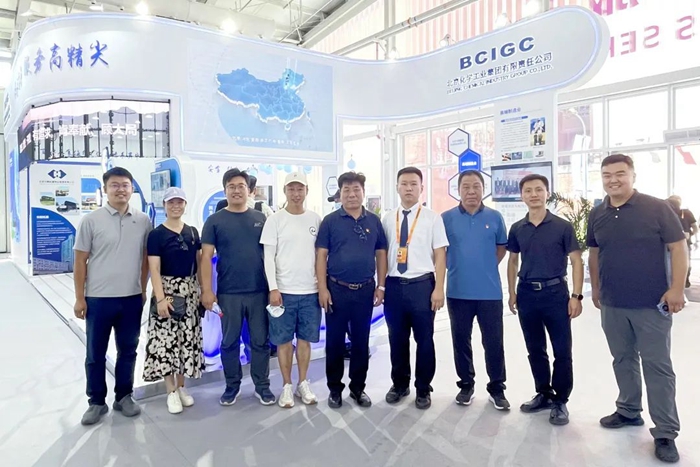 有著化工情結的觀展人員在參觀集團展位后欣然留影。