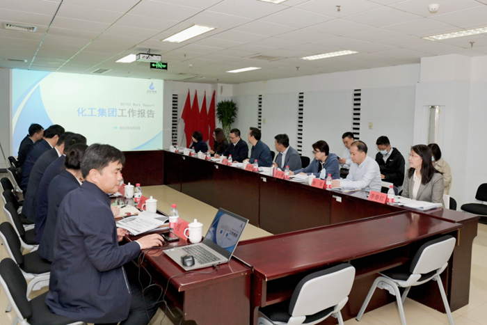 在接下來召開的調(diào)研座談會上,曾勁一行聽取了北京化工集團的工作匯報。