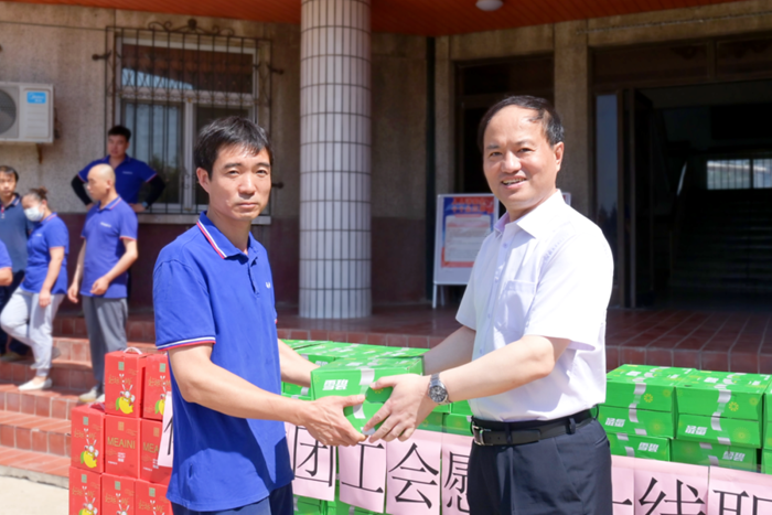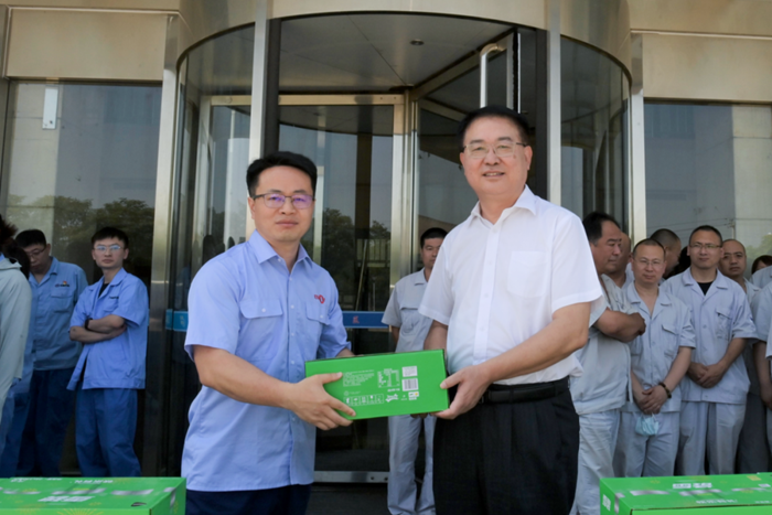 王國華詳細詢問了大家的工作狀況、身體情況,再三囑咐大家要勞逸結合,嚴格遵守各項操作規范,保證自身安全,并將防暑降溫飲品親手送至一線職工,開啟了集團2023年度夏季“送清涼”活動。
