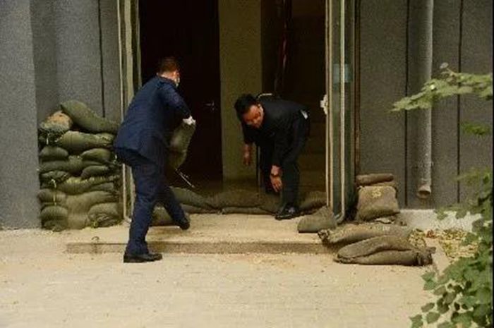 此次防汛應(yīng)急演練內(nèi)容是假設(shè)雨季汛期來(lái)臨時(shí)連降暴雨,雨水倒灌進(jìn)嘉賓樓北側(cè)安全出口,發(fā)生了險(xiǎn)情的應(yīng)急處置。演練中,巡查人員發(fā)現(xiàn)險(xiǎn)情后,迅速報(bào)告防汛指揮辦公室,防汛組長(zhǎng)下令立即啟動(dòng)防汛應(yīng)急預(yù)案并趕往現(xiàn)場(chǎng)進(jìn)行指揮,各部門(mén)防汛隊(duì)員接到指令后迅速趕到現(xiàn)場(chǎng),防汛隊(duì)員使用防汛沙袋堆積在發(fā)生倒灌的安全出口處,防止水流繼續(xù)涌入,并使用掃帚、鐵鍬等防汛工具將場(chǎng)內(nèi)積水清理進(jìn)排污井內(nèi),工程部開(kāi)啟相關(guān)抽水泵清除場(chǎng)內(nèi)積水。整個(gè)演練過(guò)程用時(shí)20分鐘,參演人數(shù)10余人,物資準(zhǔn)備充分,人員配合默契,工作有條不紊,應(yīng)急處置得當(dāng)。