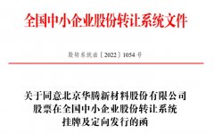 4月29日,北京華騰新材料股份有限公司(簡稱華騰新材)正式收到全國中小企業(yè)股份轉(zhuǎn)讓系統(tǒng)有限責(zé)任公司發(fā)來的 《關(guān)于同意北京華騰新材料股份有限公司股票在全國中...